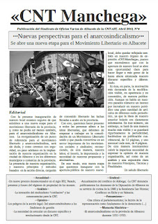 También hemos subido a la Página de nuestro Boletín el CNT Manchega Nº4, que lo publicamos cuatrimestral e incluye 12 páginas.