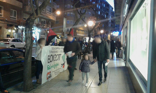 Durante dos horas, hemos repartido alrededor de 400 panfletos entre la gente que pasaba, entraba y salía del establecimiento y, en algunos casos, se paraban a escuchar sobre la situación de nuestros compañeros y nos expresaban su solidaridad con las personas represaliadas.