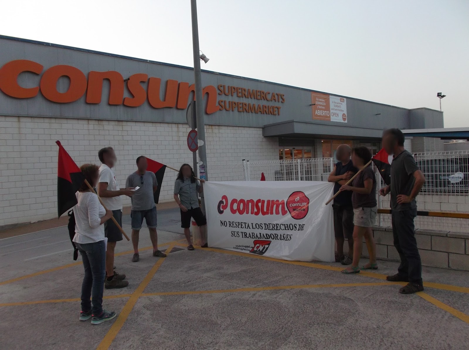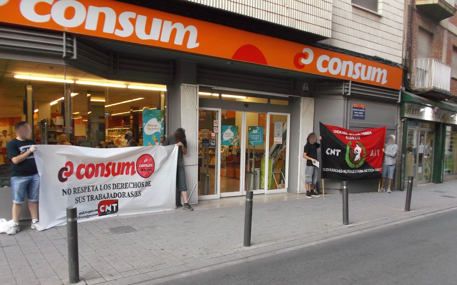 Tras denunciar la situación desde dentro, la empresa cerró filas contra cualquier posibilidad de denuncia, negándolo todo. Ya no quedaban excusas, ni razones para cualquier tipo de entendimiento con los patrones, los anarcosindicalistas se decidieron a iniciar una campaña de acción directa contra la empresa. Las dos primeras acciones consistieron en dos piquetes que se realizaron en una de las tiendas que tiene Consum en Albacete y en otra tienda que tienen en Benissa (Alicante), en el mismo fin de semana.