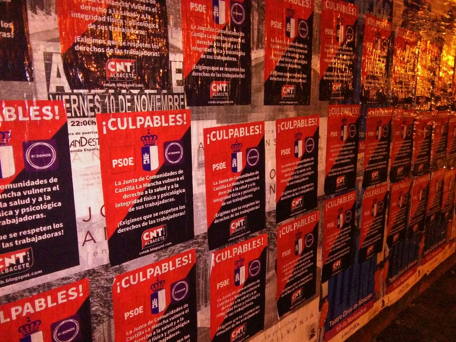 Desde el Sindicato de Oficios Varios de Albacete de la CNT-AIT se abrió hace unos meses un conflicto sindical contra la Junta, por la situación de una de nuestras compañeras. El conflicto empezó cuando nuestra compañera solicitó una movilidad voluntaria estando de baja, debido principalmente a que no podía acudir a su centro de trabajo porque su tratamiento médico, que le impedía conducir vehículos y desplazarse desde su residencia a su puesto de trabajo.