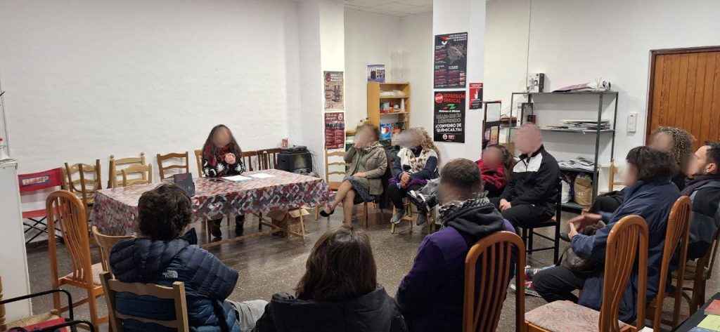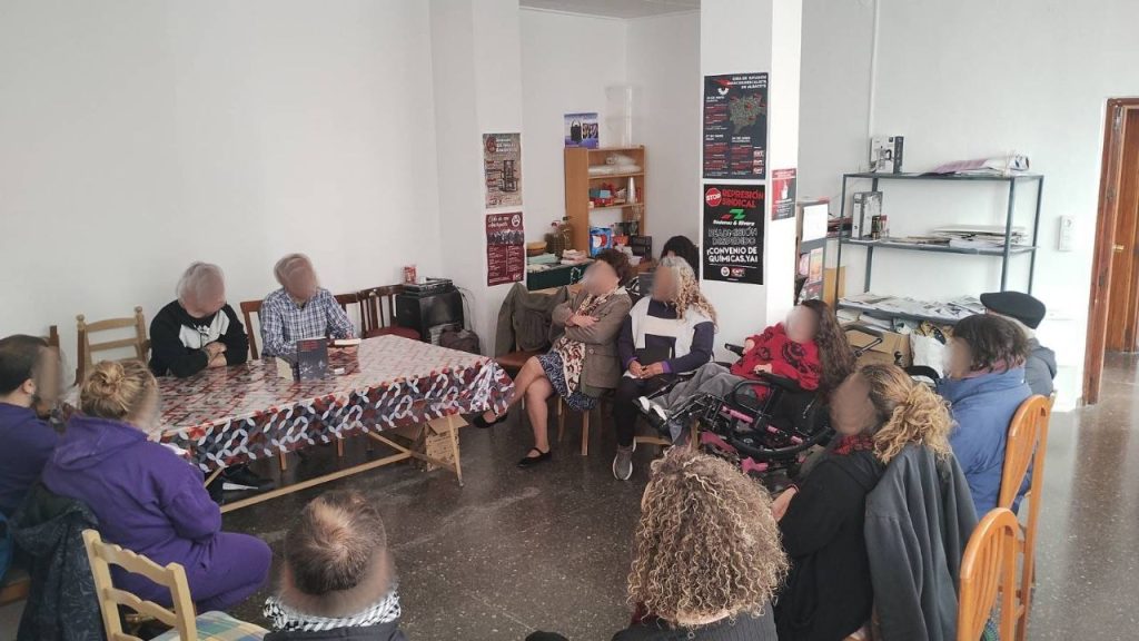 A pesar de que la Jornada comenzaba a la hora de comer, el local del Ateneo Libertario de Hellín y de la CNT-AIT estuvo lleno desde primera hora de la mañana, ya que se celebraba una asamblea general del Sindicato de Oficios Varios de Albacete de la CNT-AIT.