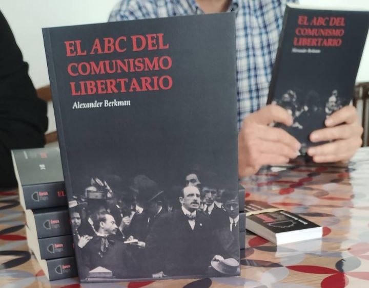 Al terminar, se hizo una breve sobremesa y comenzamos con la presentación del libro El ABC del Comunismo Libertario, publicado esa misma semana por la Editorial Anarcosindicalista Aurora Negra. Dos compañeros de la Editorial formaron parte de la mesa y presentaron el libro como la octava publicación de la Editorial. Se habló del motivo del porqué publicar un libro como este. Se dieron detalles de la vida de Alexander Berkman, del conjunto de sus obras, y sobre todo de El ABC del Comunismo Libertario como la obra que sintetiza el pensamiento de Berkman, sobre la sociedad actual, el anarquismo y la revolución.