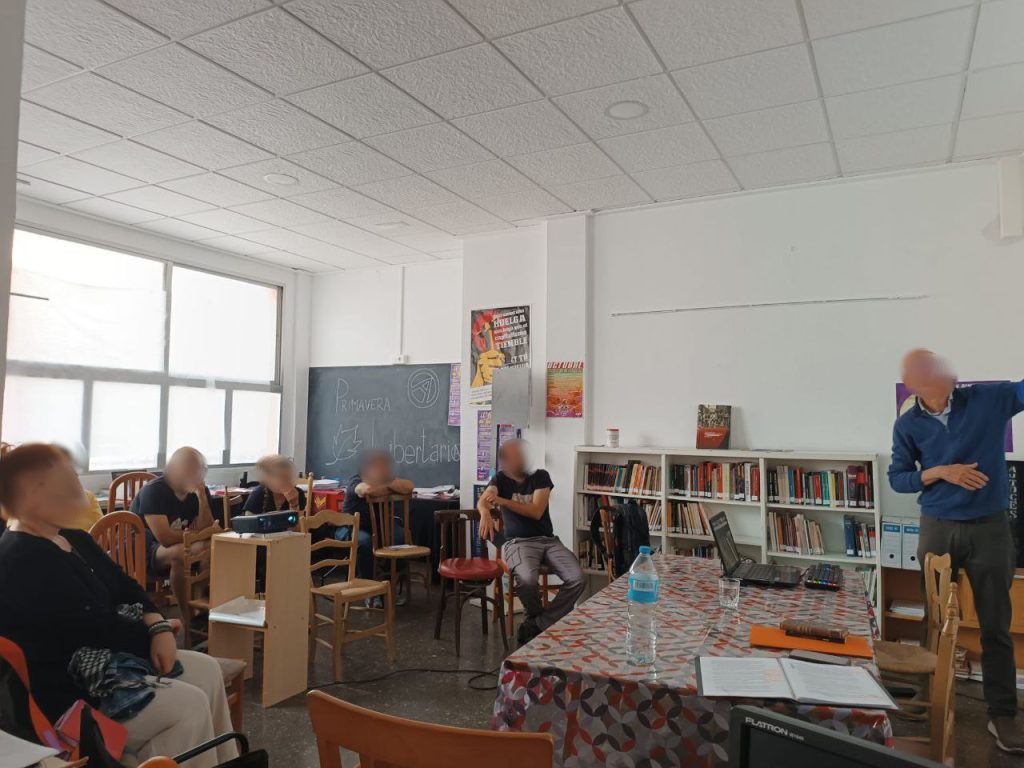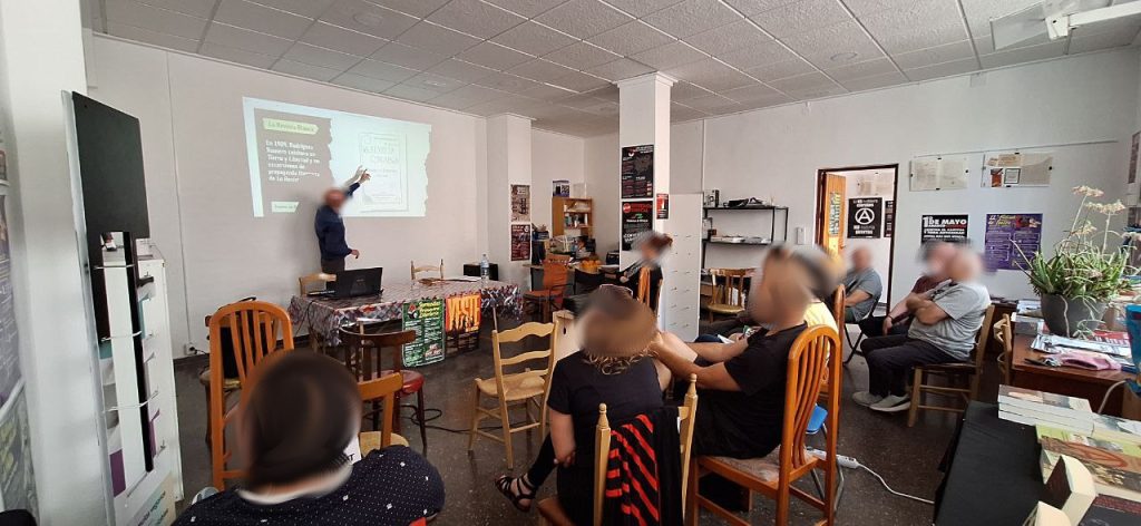 Un compañero de CNT-AIT de Hellín dio comienzo a la jornada, presentando la iniciativa que desde hacía tiempo se había acordado, de constituir una biblioteca y que finalmente habíamos llamado Biblioteca Libertaria José Rodríguez Romero, con el objeto de dar visibilidad a la figura del hellinero que en su momento fue uno de los militantes anarquistas más influyentes del movimiento.