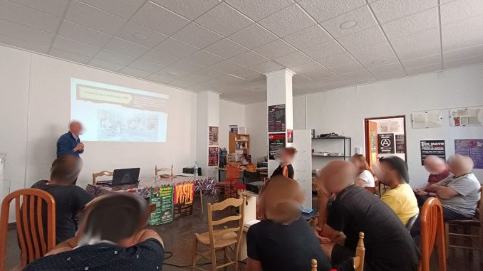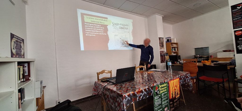 Muy brevemente se hizo presentación de Javier Olmo y de su investigación sobre la figura de Rodríguez Romero; y rápidamente tomó la palabra para hablarnos de esta figura tan importante en el movimiento obrero y anarquista.