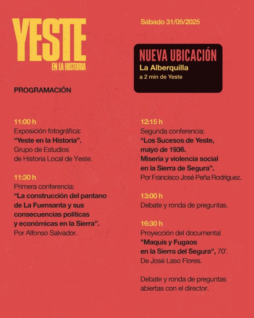 Desde la Secretaría de Prensa y Propaganda del Sindicato de Oficios Varios de Albacete de la CNT-AIT queremos informar que nos ha llegado una nueva información del Grupo de Estudios de Historia Local de Yeste, relacionada con la Jornada de Memoria Histórica «Yeste en la Historia» que se va a celebrar el próximo día 31 de mayo en Yeste.