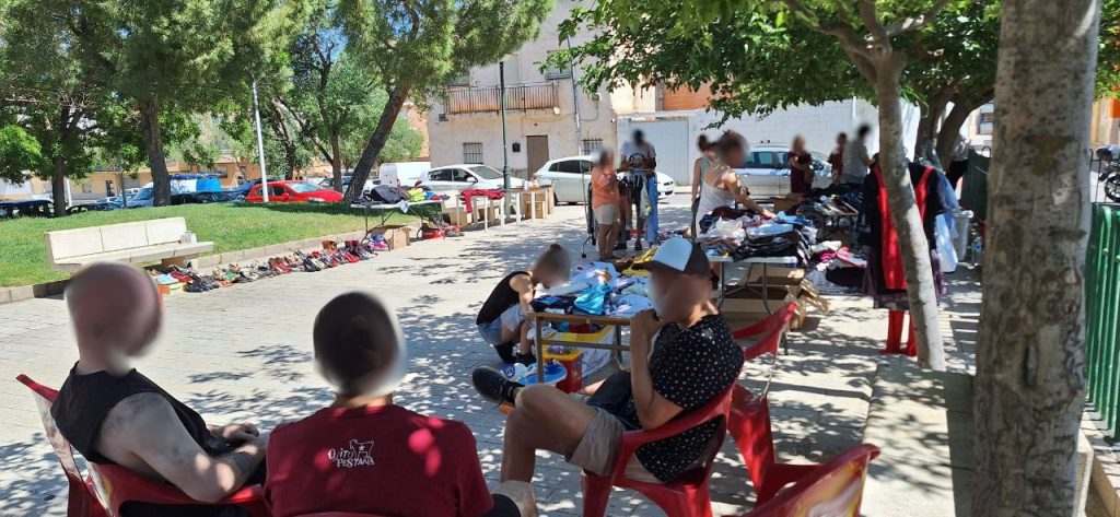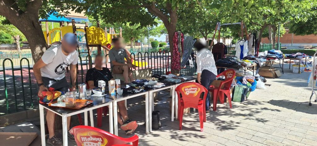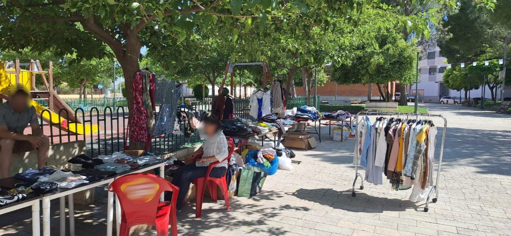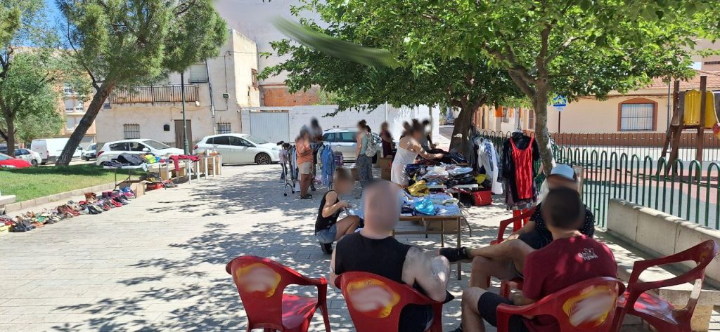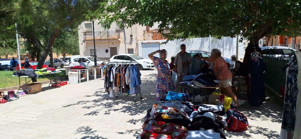 Eran trabajadores temporeros que habían venido de Senegal, del Congo, y de Mali a trabajar a España. Vivían en uno de los asentamientos chavolistas a las afueras de Albacete y en naves abandonadas. Les explicamos en qué consistían nuestro proyecto de economía anarquista y lo entendieron a la primera. Era fácil hacer entender a un grupo de personas que viven una vida llena de privaciones que tienen derecho a satisfacer sus necesidades, con independencia de que tengan o no dinero. Algunos de ellos no daban crédito a poder llevarse algunas prendas de ropa sin pagar absolutamente nada.