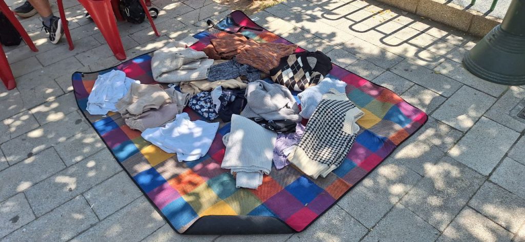 El domingo 8 de junio, las Jornadas de Economía Anarquista Colectividad sin Dinero comenzaron a las 11:00 hrs. A primera hora se encontraron algunas compañeras y compañeros anarcosindicalistas montaron todas las mesas y se colocaron todos los bienes que se habían entregado el día anterior.