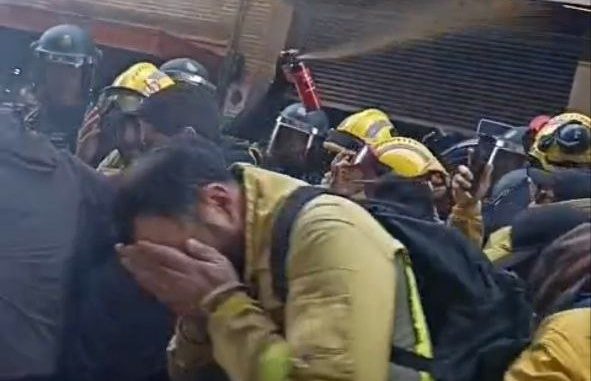 Condenamos absolutamente la represión y señalamos al PSOE y a SUMAR, una vez más, como enemigos de la clase trabajadora organizada y en lucha, por ordenar reprimir la movilización obrera y la huelga de bomberos forestales.