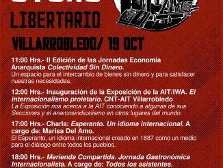 El próximo domingo 19 de octubre el Núcleo de Villarrobledo de la CNT-AIT organiza una Jornada Internacionalista y de Solidaridad Obrera en esta localidad. La […]